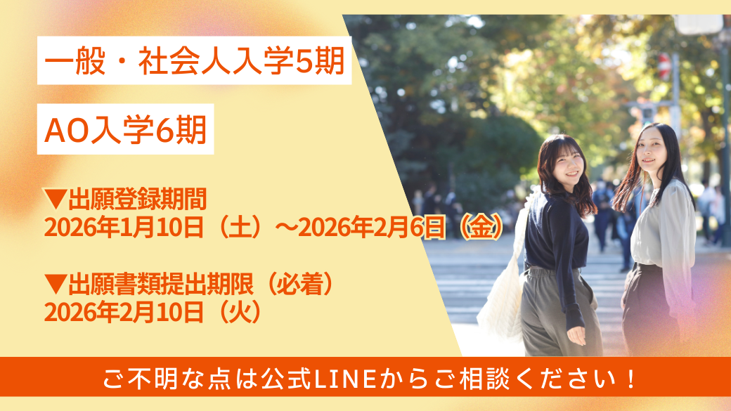 - 2026/01/10 入試情報 【AO入学6期|一般・社会人入学5期】1/10(土)出願受付開始