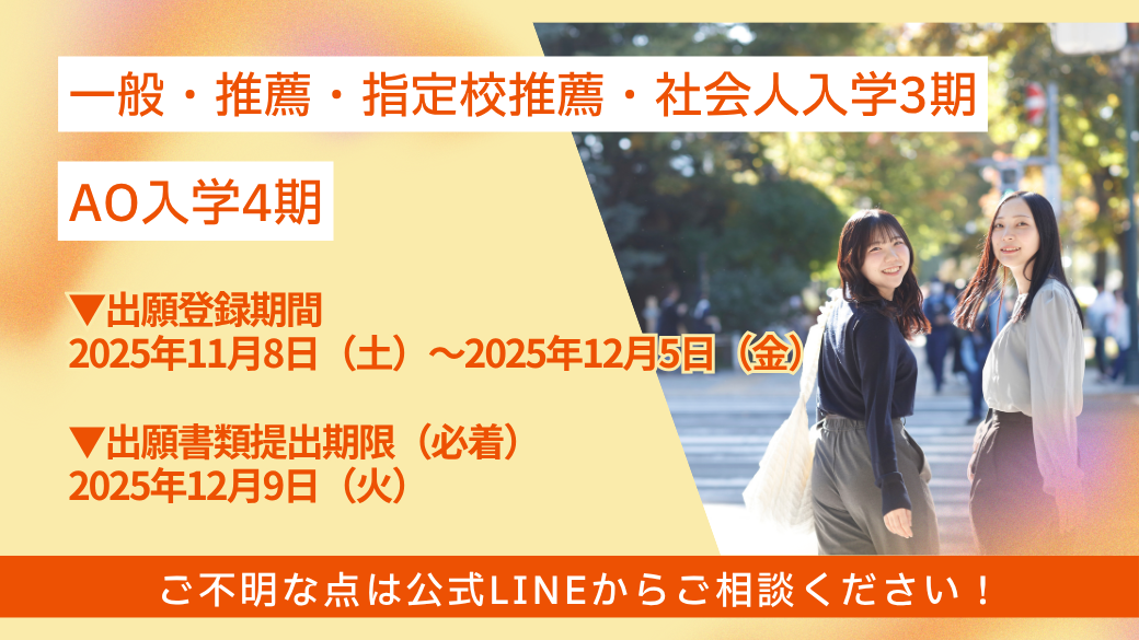 - 2025/11/08 入試情報 【AO入学4期|一般・推薦・指定校推薦・社会人入学3期】11/8(土)出願受付開始