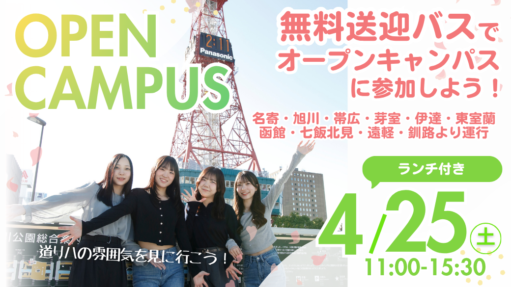 - 2026/03/14 進学イベント情報 【4/25(土)】無料送迎バスでオープンキャンパスに行こう!【ランチ付き】