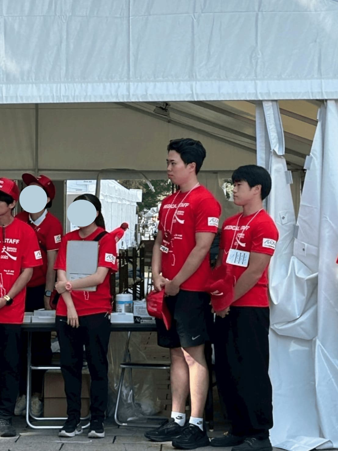 近年ますます暑さも増す中、熱中症やその他のコンディション不良に対応できるよう、救護テントで氷のうの準備や競技中の参加者サポートにあたりました!