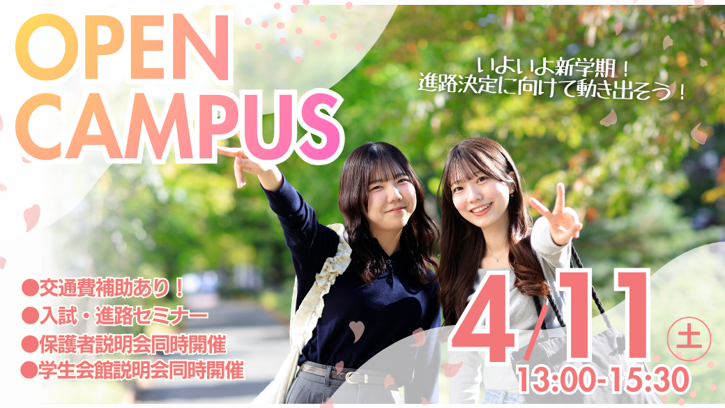 4/11(土)オープンキャンパス開催します!🌸