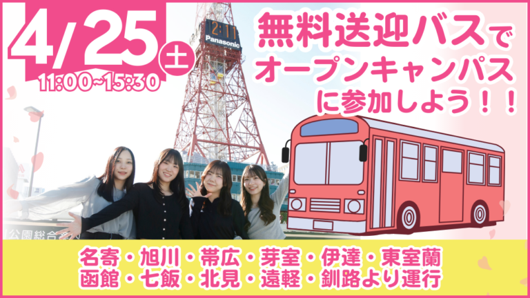 【4/25(土)】無料送迎バスでオープンキャンパスに行こう!【ランチ付き】
