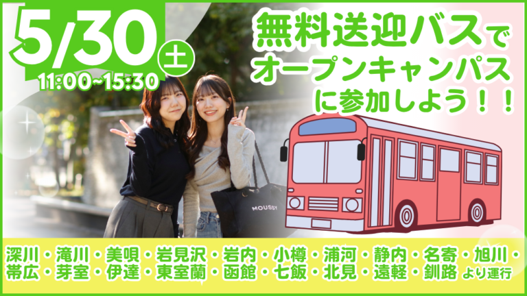 【5/30(土)】無料送迎バスでオープンキャンパスに行こう!【ランチ付き】